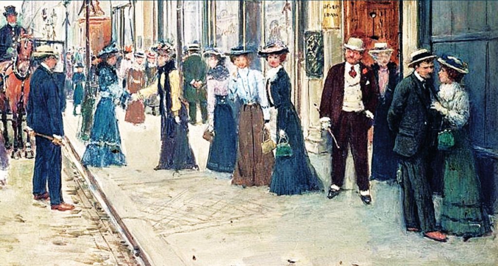 Sortie des ouvrières de la maison Paquin rue de la Paix Lyon